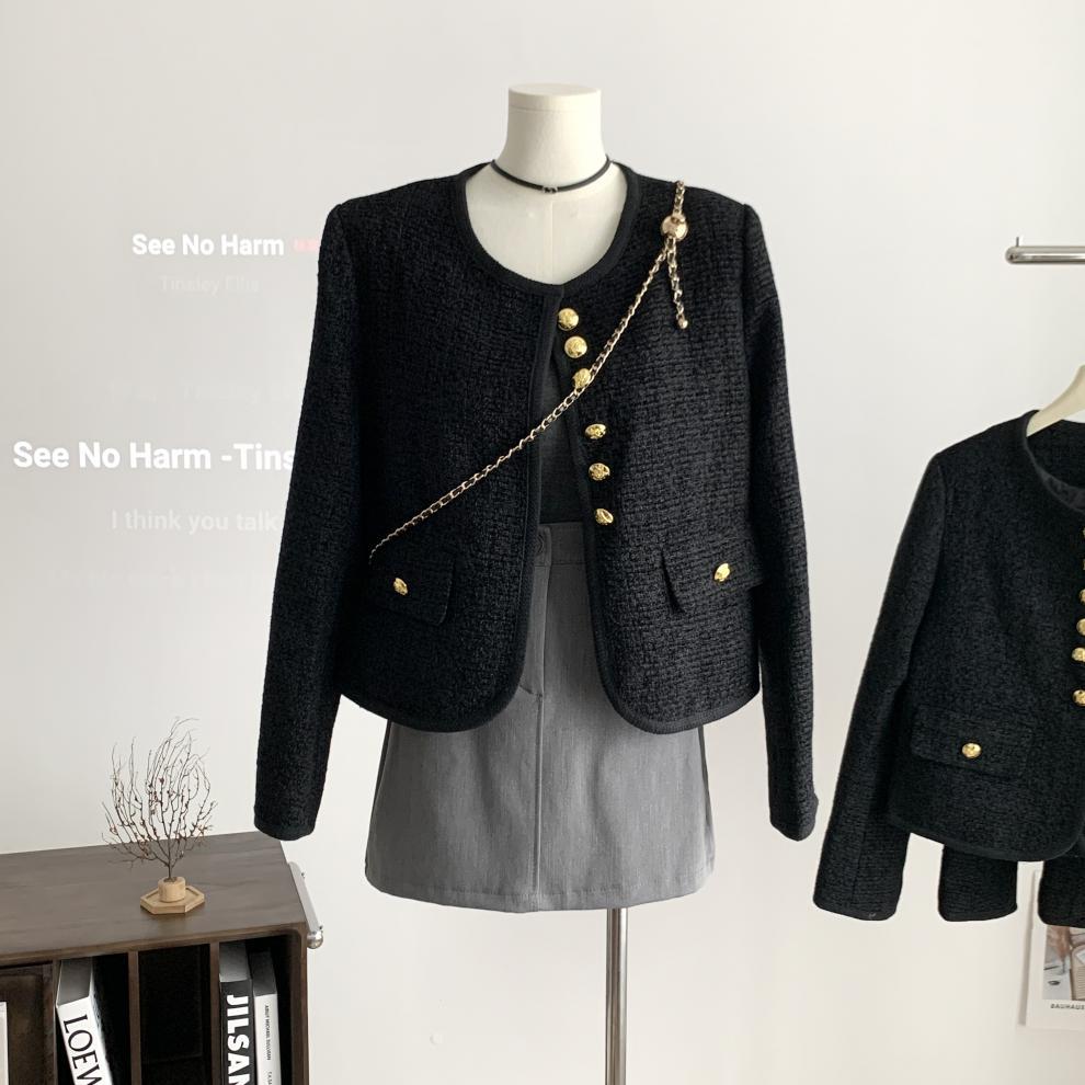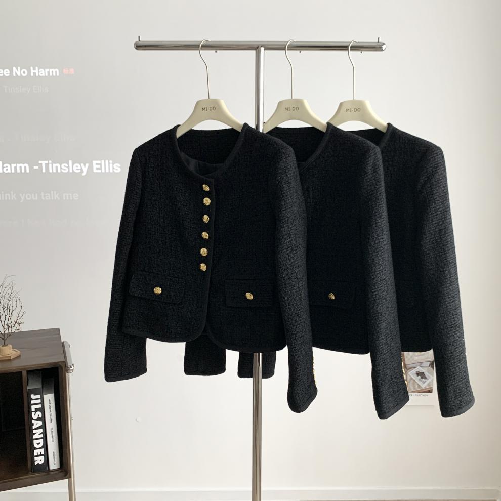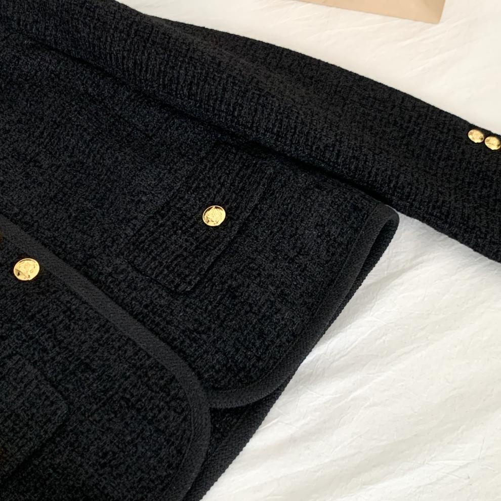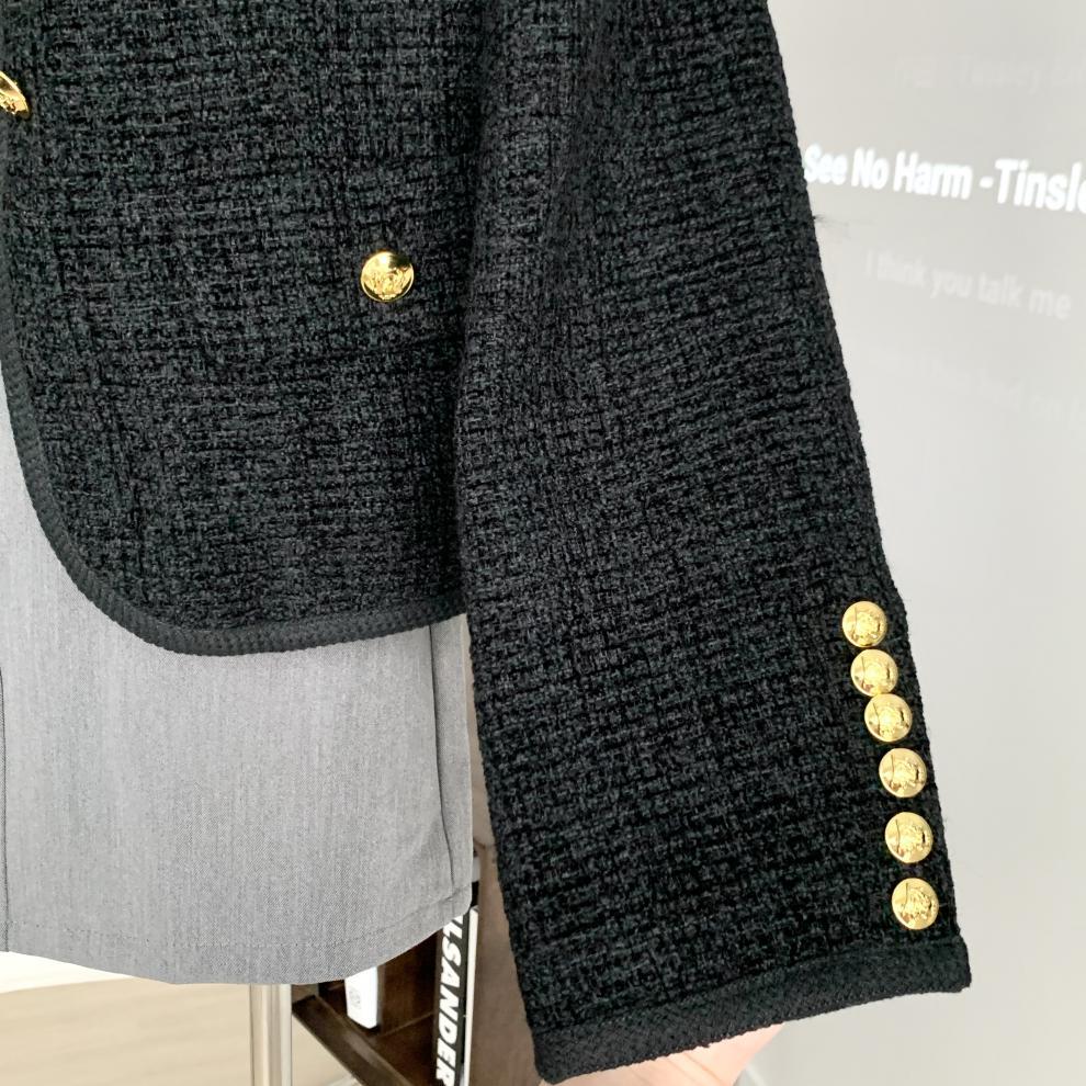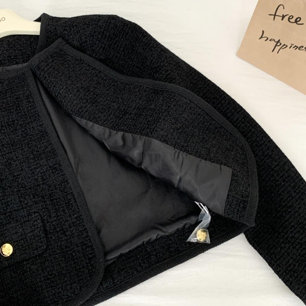 Black Little Fragrance Short Coat For Women 23 New Autumn/Winter Tweed Six Button Double Pockets