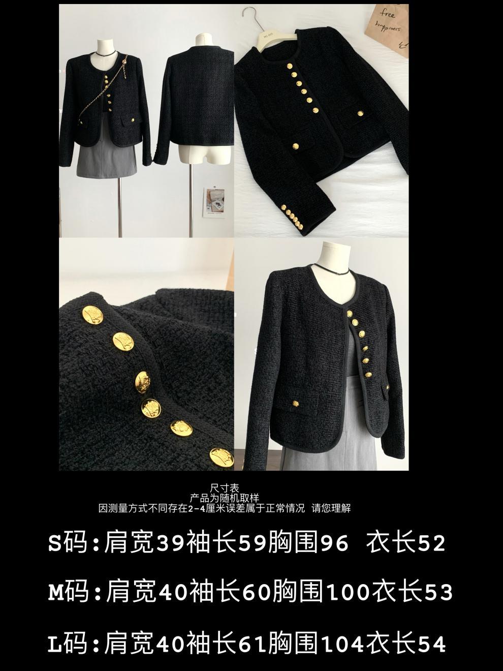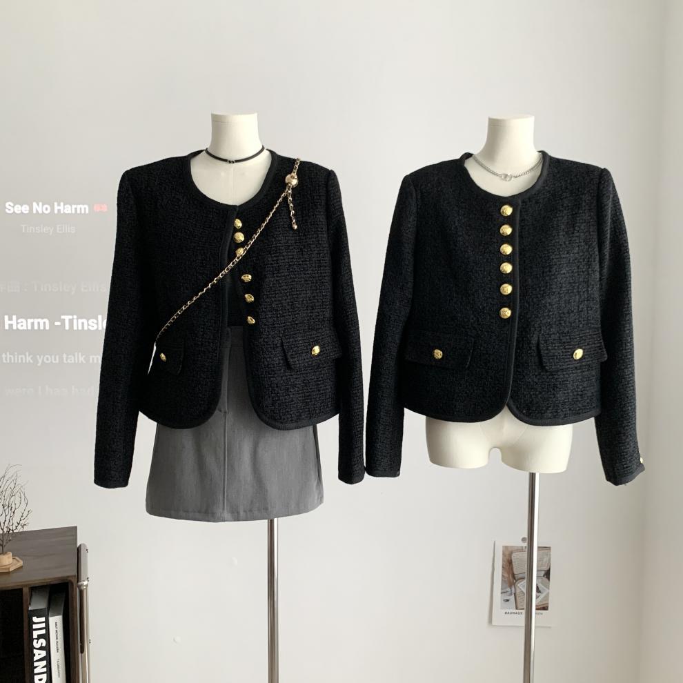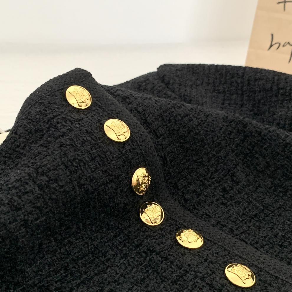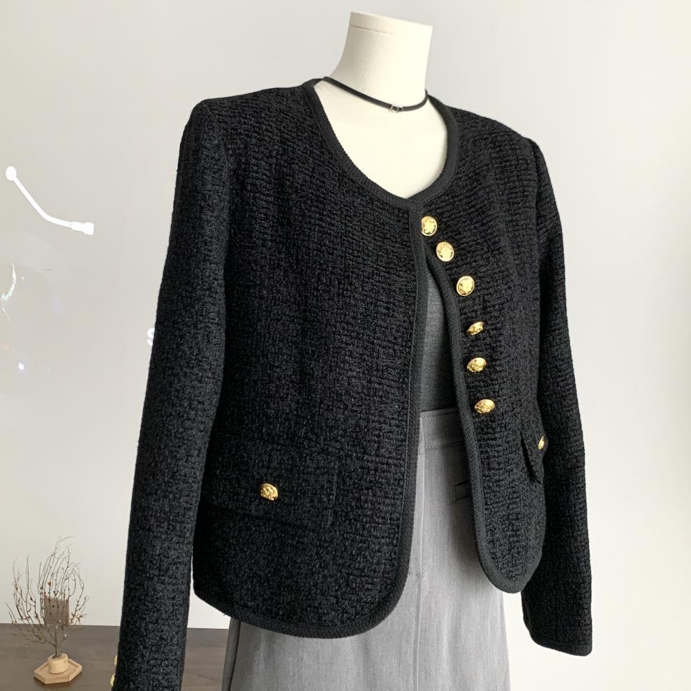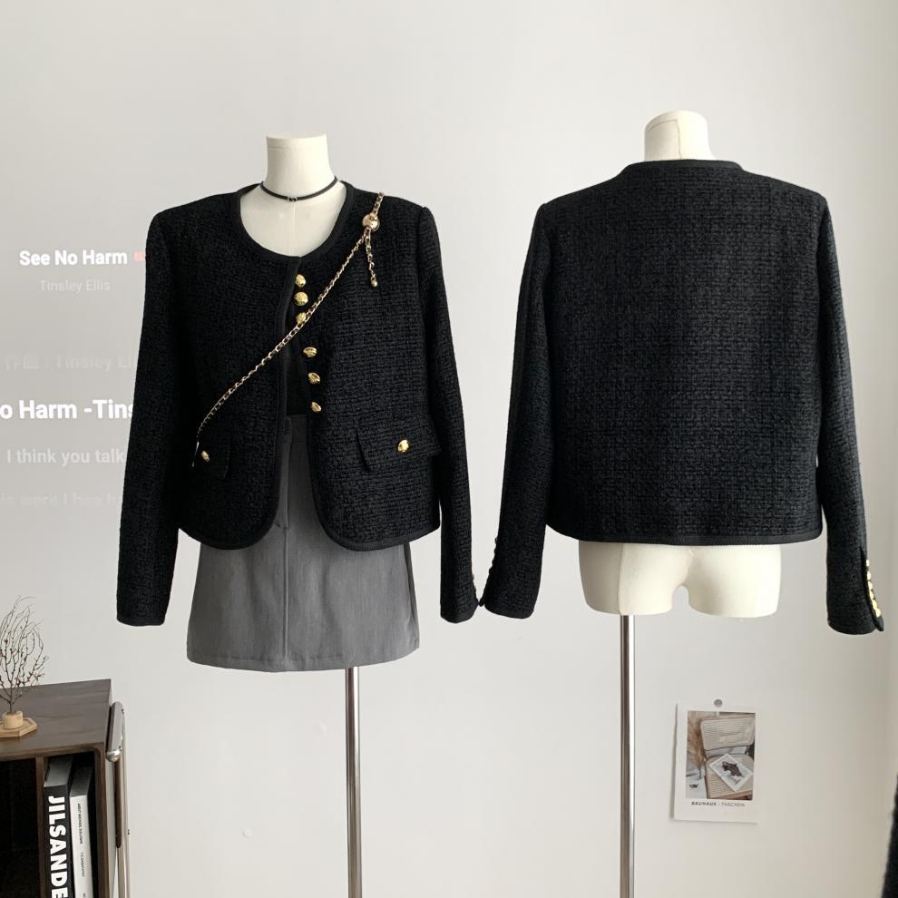 Black Little Fragrance Short Coat For Women 23 New Autumn/Winter Tweed Six Button Double Pockets